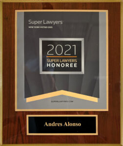 Super Lawyers Names Andres Alonso of Alonso Krangle, LLP to Its 2021 List One of our founding partners, Andres Alonso, has been named to the 2021 list of New York Metro Super Lawyers. Each year, Super Lawyers chooses no more than five percent of the attorneys in each state to receive this impressive award. Andres…